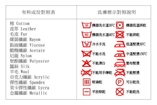 布料&洗標對照表