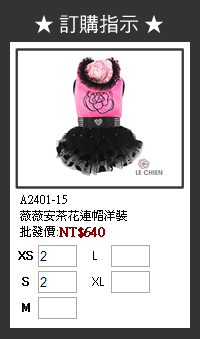 [Step 1.] 請在尺寸空格填入您要訂購的數量(如右圖),填寫完成後,在”請輸入您的資料”填入訂購人的所有資料,其中E-mail一定要寫。 [Step 2.] 完成以上要求後,按[訂單送出]按鈕,系統自動發送一封”Pet Republic訂單”電子郵件給您。如果沒有收到,請查看您的垃圾郵件信箱。 請注意:您的訂購數量會因為公司現貨量不足而變更出貨,我們收到訂單會再跟您核對內容。